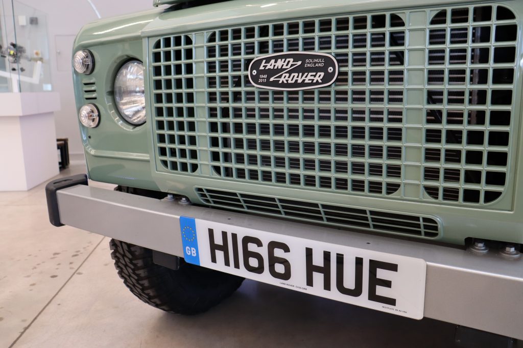 Right – The number plate H166HUE is a nod to the original Land Rovers number plate HUE166