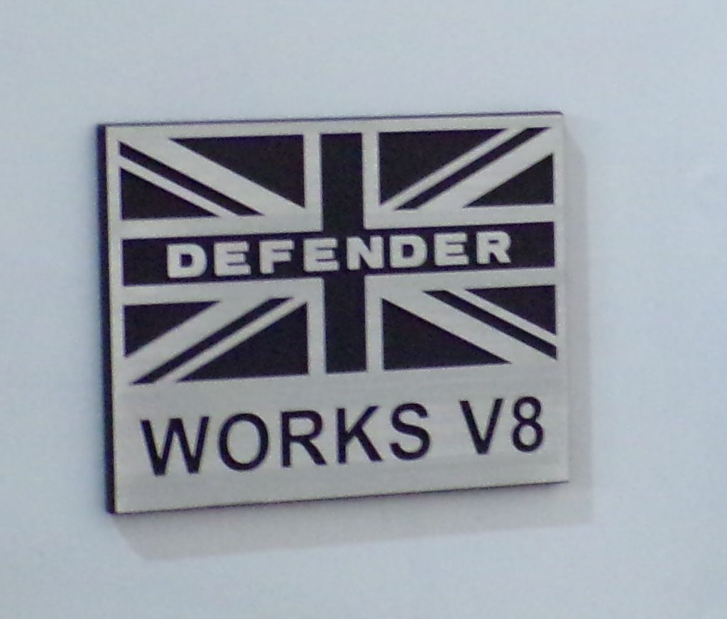 The interior of the vehicle was tastefully trimmed with Windsor Leather which adorned not only the seats (made by Recaro), but the dashboard, door panels and roof lining. Exterior wise the Defender looked the part. A wider stance, all terrain tyres and all new 18” Sawtooth alloy wheels gave the Land Rover a certain road presence, and the contrast gill and wheel arches finished in black complimented the wide array of exterior colours available (including satin finishes). Defender badges would adorn the bonnet and, on the wings, a special Works V8 badge was placed
