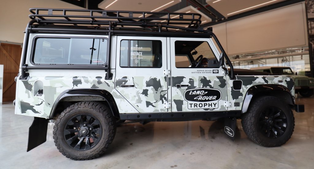 With the words, why change a winning formula soundly ringing in their ears, in July 2022 Land Rover Classic introduced the Trophy II. Again, limited to just 25 examples across the 90 and 110 wheelbases, it was announced that double cabs would be converted too. These would be limited to only 5 examples, however. Whilst similar in specification and equipment to the original Trophy, the Trophy II had a unique exterior and had replaced the steel wheels with 18” Black Sawtooth alloys.  At first glance, you would be forgiven to think it was just an artic camouflage, but on closer inspection you would see it was much more. Hidden within the design were 23 different locations that have all been part of Land Rovers rich heritage. Also included were silhouettes of the Series and Defender Land Rovers as well. As with the original Trophy, the new owners were invited to a 3-day adventure where they could get a know their vehicles in a competitive environment.
